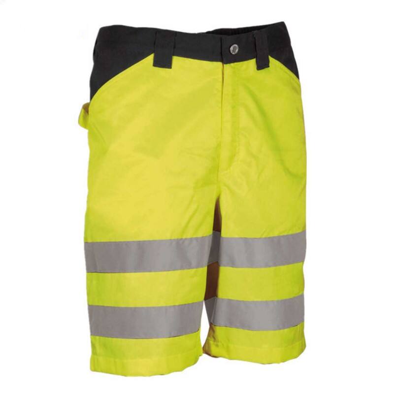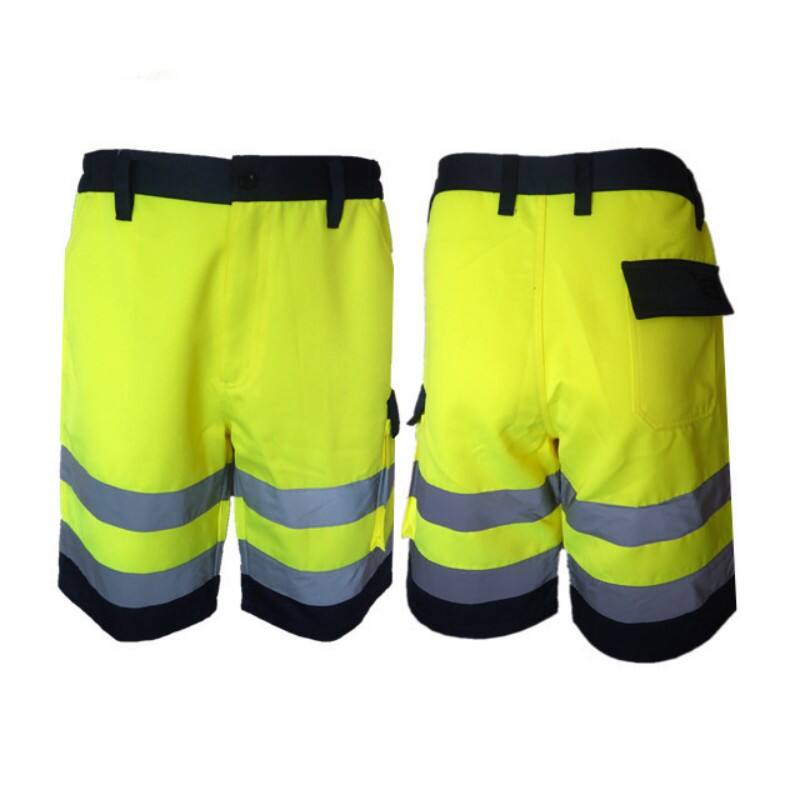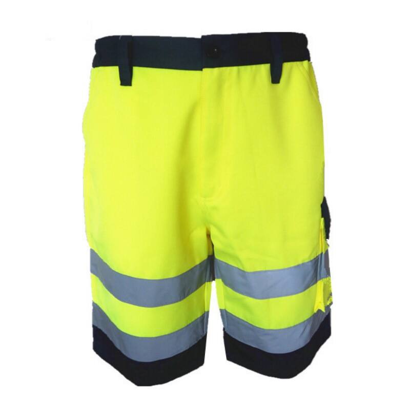 High-Visibility Fluorescent Yellow Work Shorts are a smart choice for professionals working in warm or seasonal environments where safety and visibility remain a priority. Featuring a bright fluorescent yellow color with navy blue accents and dual reflective strips on the legs, these shorts ensure high visibility in work settings such as construction, landscaping, and road maintenance during warmer months.